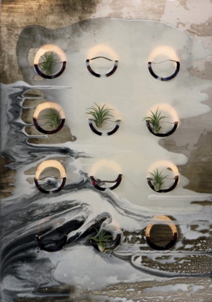 Mixed media, acrylic paint, acrylglas, resins, stainless steel, LED